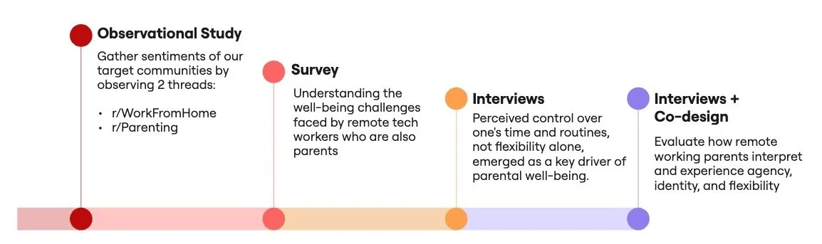 While many companies invest in wellness programs, few consider the unique emotional and logistical challenges that parents face daily. Our goal was to uncover these realities and reframe well-being not as a benefit, but as a foundation for inclusive and sustainable work.